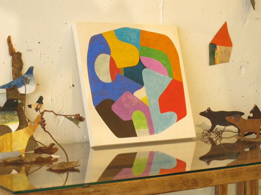 植物の生けに加え、画家.藤川孝之さんとの共作もいくつか。